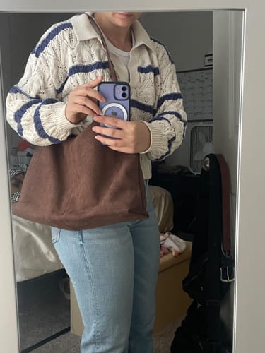 It’s the perfect size — not too big, not too small. The suede feels soft but durable, and the strap sits just right on the shoulder.