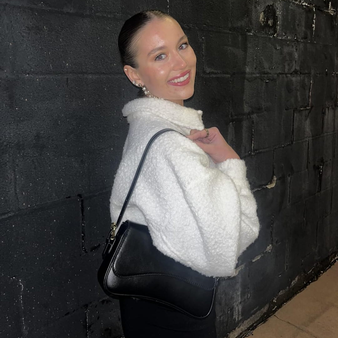 This one feels super high-end — the stitching and structure are beautiful. It’s the perfect size for going out or date nights.